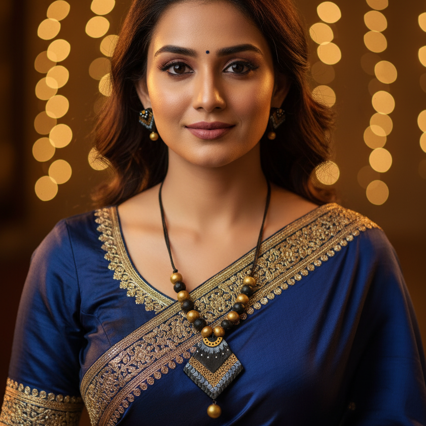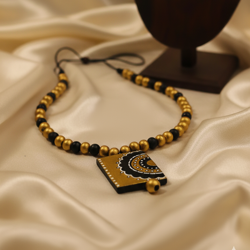 Terracotta Jewelry Necklace Set for Women – Handcrafted Clay Necklace with Earrings